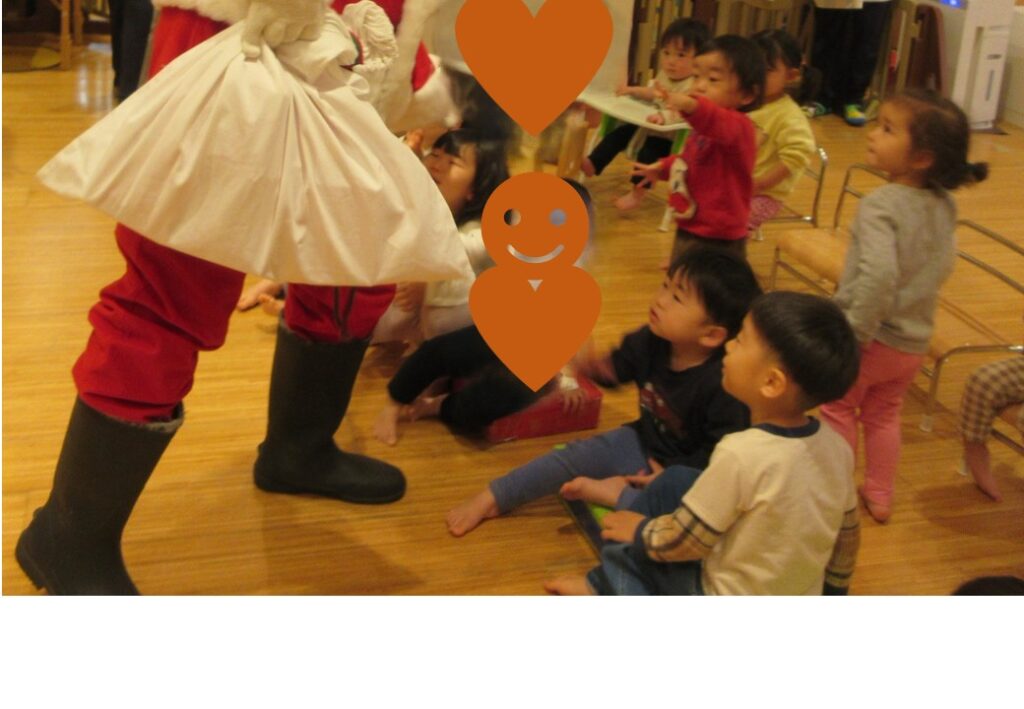 「メリークリスマス」と言いながらサンタさんが登場すると、目を丸くして驚いた顔で口をおさえていた子もいました。