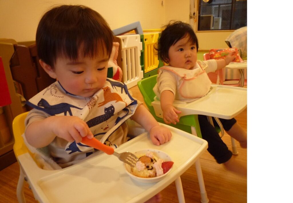 みんなのうたや保育士のパネルシアターが終わると、鈴の音が。