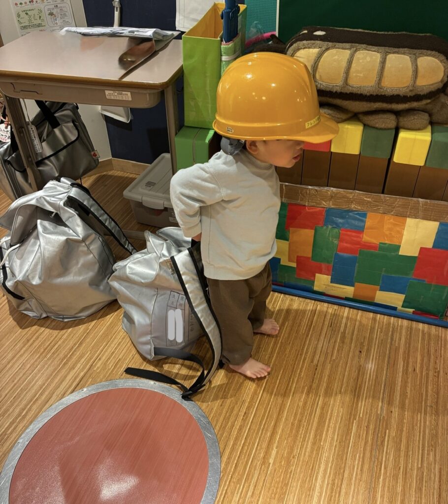 帽子(ヘルメット)かぶって、リュックもだよね。